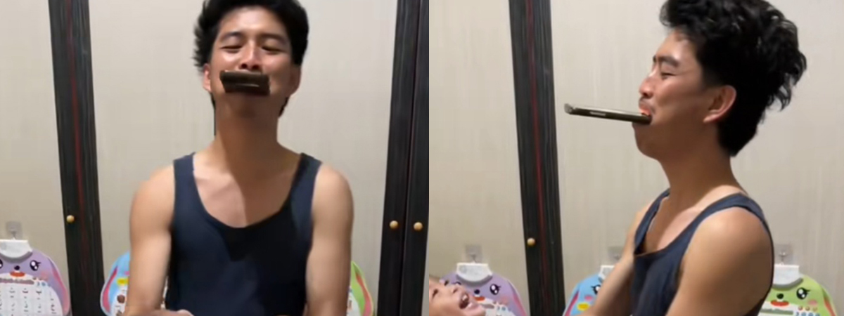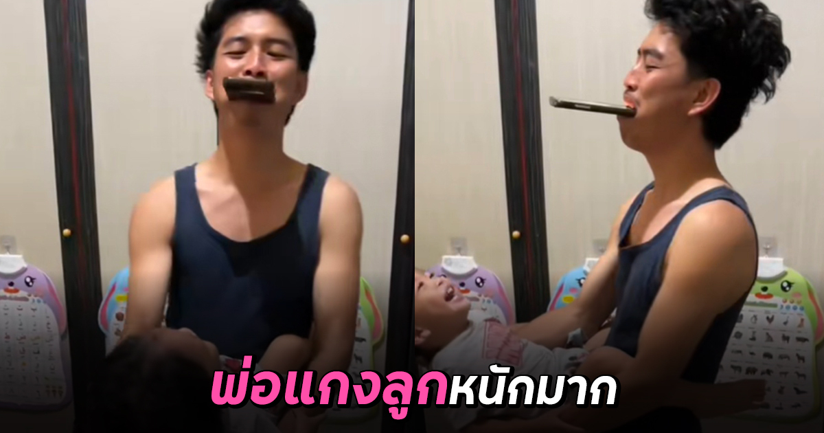 ฮาจนเป็นไวรัลดัง พ่อใช้ปากคาบมือถือ ถ่ายคลิปตอนอุ้มลูก ผลที่ได้แกงหนักมาก