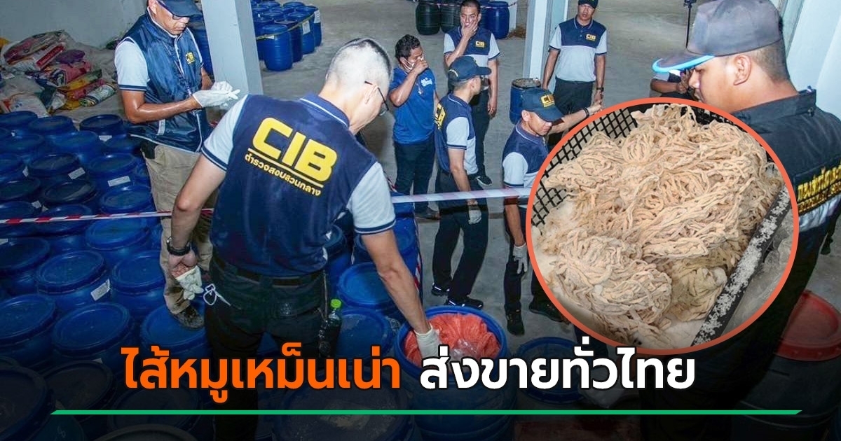 เปิดปฏิบัติการ ลากไส้หมูเถื่อน จีนเทาเช่าโกดังหมักไส้หมู สภาพสุดโสโครก ไส้เน่าส่งกลิ่นเหม็น คาดส่งขายทั่วไทย มูลค่ากว่า 10 ล้านบาท