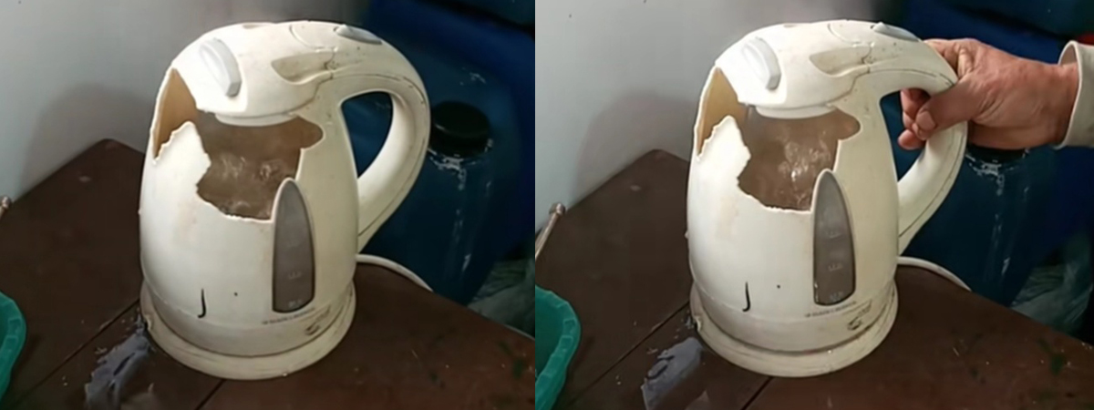 ผู้ใช้ TikTok @hmiguel.29 ได้เผยภาพตอนใช้กาต้มน้ำร้อน ซึ่งสภาพตัวเครื่องค่อนข้างเก่ามากแล้ว แต่ยังใช้ต้มน้ำได้อยู่ ยิ่งตอนเทน้ำ ยังออกมาได้ถึง 2 ทาง ชาวเน็ตต่างพากันทึ่งในสภาพอันเก่าแก่ของกาน้ำร้อน พร้อมกับเตือนด้วยว่า ไม่ควรใช้เครื่องใช้ไฟฟ้าที่ชำรุด ค่อนข้างอันตราย ก่อให้เกิดไฟไหม้และไฟช็อตได้