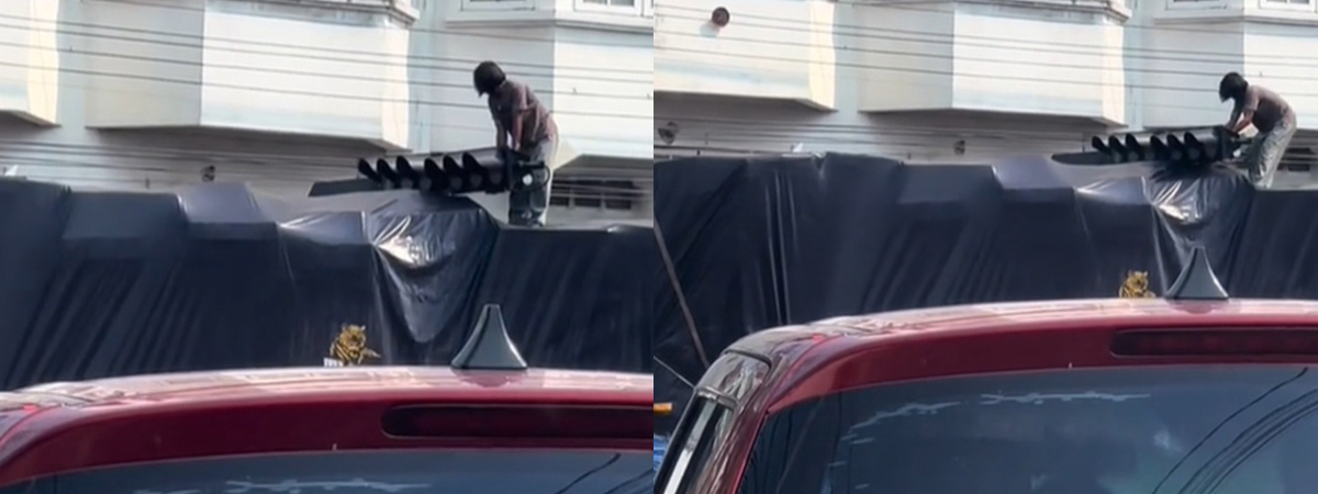 ผู้ใช้ TikTok @earnttm ได้เผยภาพเหตุการณ์ที่ทำเอาคนทั้งถนนตกตะลึง หลังจากที่รถบรรทุกคันหนึ่ง สูงจนไม่สามารถขับผ่านเสาไฟจราจรได้ จึงแก้ปัญหาแบบที่คนไทยเขาทำกัน โดยการให้คนขึ้นไปดึงเสาไฟ เพื่อให้รถบรรทุกขับผ่านไปได้ นอกจากจะทำผู้คนเกาหัวแรงแล้ว ยังเสี่ยงโดนเสียค่าปรับให้ตำรวจอีกด้วย