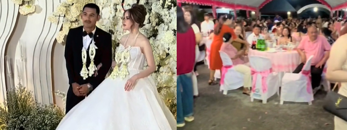 ผู้ใช้ TikTok @koy_aphinya24 ได้เผยภาพคู่รักคู่หนึ่ง แต่งชุดบ่าวสาวจัดงานแต่ง มีโต๊ะจีนและที่ให้แขกถ่ายรูปเหมือนงานคนอื่น แต่ที่แตกต่างและพิเศษยิ่งกว่า ก็ตรงที่บ้านเจ้าบ่าวและเจ้าสาวอยู่ใกล้กัน ในชนิดที่ว่าแค่ข้ามถนนก็ถึงเลย ชาวเน็ตถึงกับแซวว่า รักข้ามถนนของจริง
