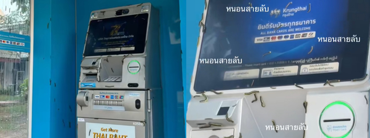 ผู้ใช้ TikTok @sa.umeko ได้เผยภาพสาวคนหนึ่ง อยู่หน้าตู้เอทีเอ็ม เพื่อเอาเงินเดือนก้อนสุดท้ายออกมา ระหว่างที่กำลังเตรียมกดเงิน แทบหยุดชะงักไปทันที เพราะเจอสายลับแฝงตัวอยู่หน้าตู้ สายลับที่ว่ามาในรูปแบบหนอน เลื้อยยั้วเยี้ยไปทั่ว จนเธอเห็นแทบขนลุกซู่