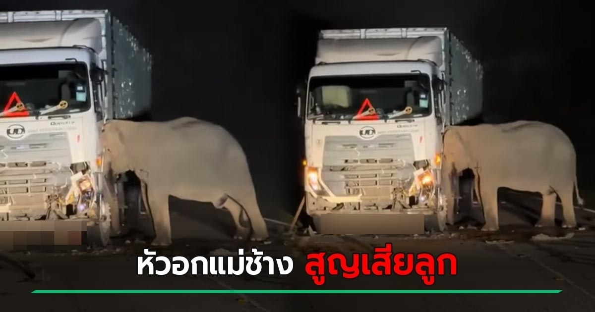 บีบหัวใจ แม่ช้างแนบหัว-ดันรถบรรทุก หวังช่วยลูกช้าง ถูกชนติดใต้ท้องรถ โซเชียลสุดเศร้าเห็นใจแม่ช้าง หน่วยงานคุ้มครองสัตว์ป่าเข้าดูแล