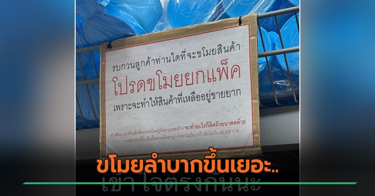ไวรัล ร้านติดป้ายถึงลูกค้าที่จะขโมยสินค้า โปรดขโมยยกแพ็ก หวั่นของที่เหลืออยู่ขายยาก พร้อมฝากคำเตือนสั้น ๆ แต่ชวนสะพรึง