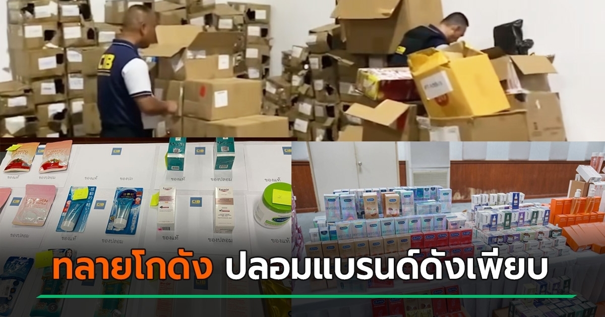 บุกจับโกดังสินค้าปลอมทุนจีน เสียหายเกือบ 60 ล้านบาท พบปลอมของยี่ห้อดังเพียบ ทั้งแบรนด์เนม ครีม ยันอาหาร เกือบ 8 หมื่นชิ้น พร้อมขายออนไลน์