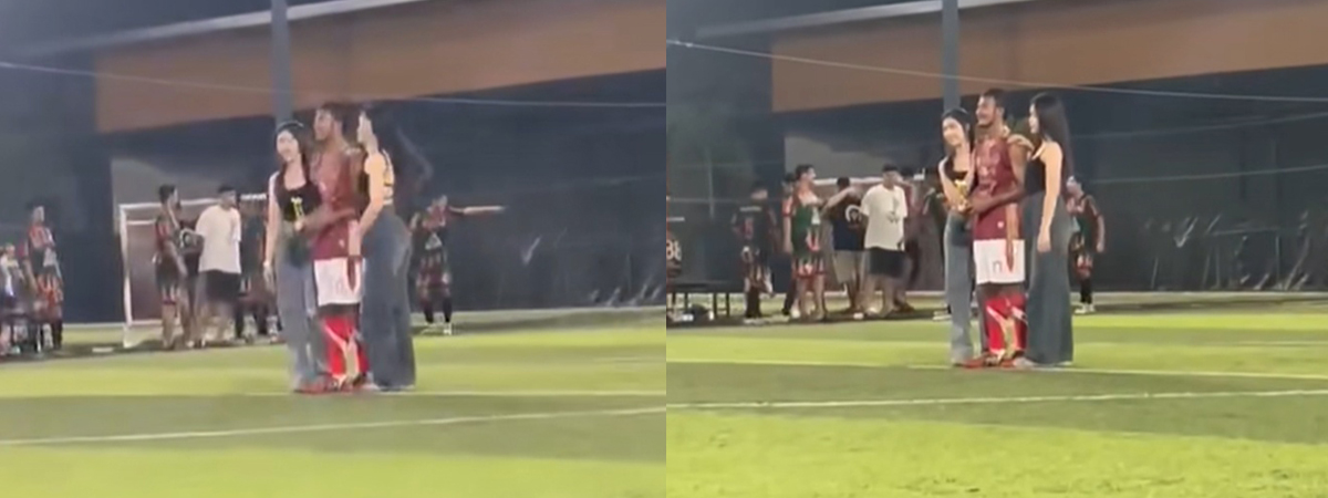 ผู้ใช้ TikTok @armphanek ได้เผยนาทีหนุ่มผู้เป็นพ่อบ้านใจกล้า ยืนถ่ายรูปกับสาวสวยแบบใกล้ชิด แถมยังยิ้มแฉ่งอย่างชัดเจน จนภรรยาที่อยู่ข้างสนามฟุตบอลเห็นเข้า ถึงกับตะโกนด่าลั่นสนาม ทีกับตัวเองไม่เห็นถ่ายแบบนี้เลย พร้อมทั้งสบถคำหยาบไปเน้น ๆ จนพ่อบ้านใจกล้าผู้นี้เข่าทรุดลงไปที่พื้นเลยทีเดียว แทบยกมือไหว้ภรรยาไม่ทัน