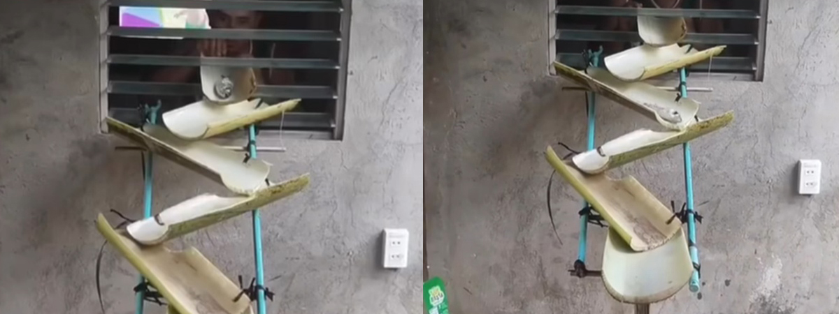 เฟซบุ๊ก Tak Sipaphai ได้เผยภาพหนุ่มคนหนึ่ง สาธิตวิธีทอดปลาแบบคนกลัวน้ำมันกระเด็น แก้ปัญหาง่าย ๆ โดยเริ่มจากนำลำต้นของต้นกล้วยที่ตัดแล้ว มาวางซ้อนกันให้เป็นสไลเดอร์ จากนั้นให้เอาปลาลงสู่กระทะ แบบให้ไหลลงไปเอง เพียงเท่านี้ไม่ต้องกลัวน้ำมันกระเด็นอีกต่อไป แต่สิ่งที่ชาวเน็ตเป็นห่วง คงจะเป็นตอนพลิกด้านนี่แหละ จะเดินมาพลิกด้านปลายังไงล่ะเนี่ย