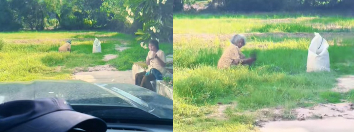 ผู้ใช้ TikTok @tidsanuruenklin ได้เผยภาพตอนหลานพายายมาพบหมออนามัย ช่วงที่รอคิวตรวจสุขภาพ หลานเห็นยายไปนั่งตรงสนาม เอะใจว่าไปทำอะไรตรงนั้น ปรากฏว่ายายนั่งเกี่ยวหญ้าเอากลับบ้าน เพื่อให้วัวที่บ้านได้กินอิ่ม ไปหาหมอยังไงให้ได้ของฝากกลับบ้าน หลานเห็นแทบกลั้นขำไม่ไหว