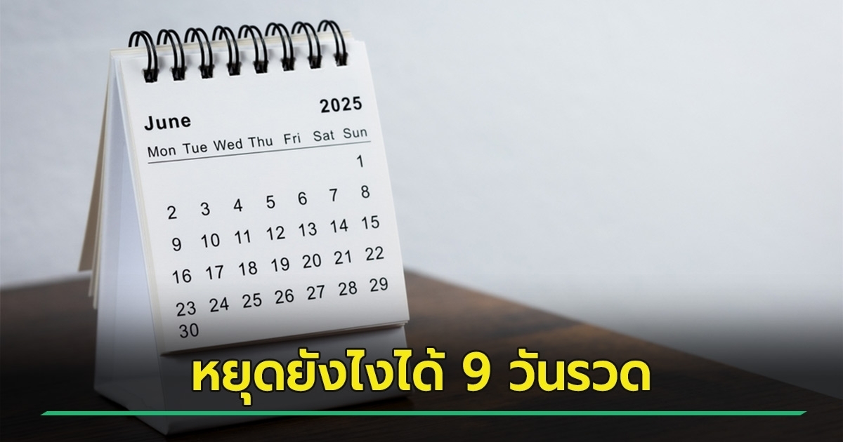 วันหยุดเดือนมิถุนายน 2568 ทำยังไงถึงได้หยุด 9 วันรวด แถมมีวันหยุดพิเศษเพิ่มอีก 1 วัน ทำให้ไม่ต้องลาพักร้อนเยอะ