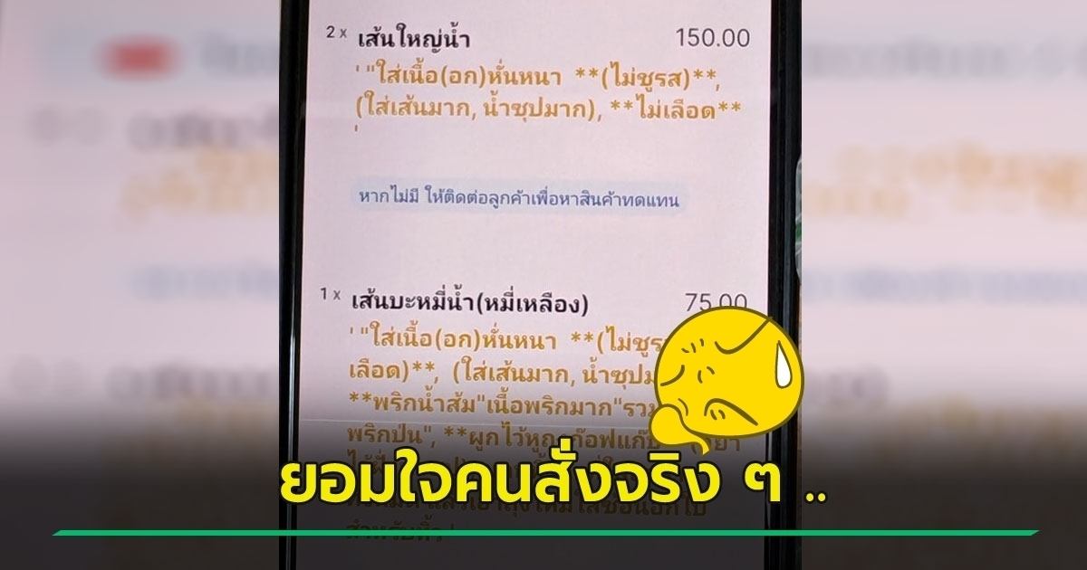 ร้านถึงกับมึน เจอออร์เดอร์ลูกค้าสั่งมาสุดละเอียดยิบ แถมยังหมายเหตุชวนพีค ด้านชาวเน็ตแห่เชียร์ให้กดยกเลิก