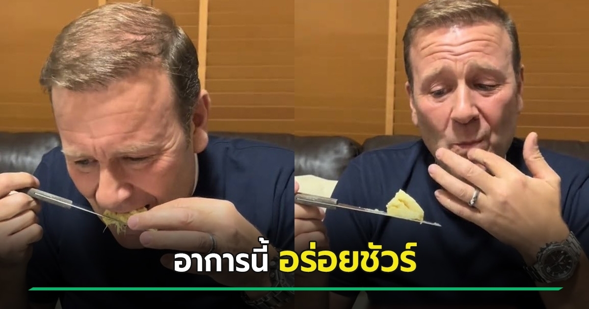 ชาวต่างชาติลองกินทุเรียนครั้งแรก ซึ่งพอเจ้าตัวได้เห็นใกล้ ๆ ก็ถึงกับทำหน้าตาชวนกังวล ก่อนจะตัดสินใจหั่นออกมาชิ้นเล็ก ๆ เพื่อลองชิม