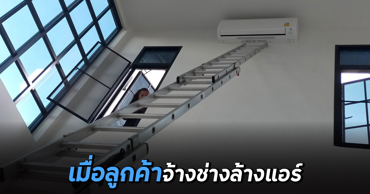 เฟซบุ๊ก ช่างแอร์เชียงใหม่ ลำพูนลำปางแพร่ ได้โพสต์ในกลุ่ม หางานแอร์ หาช่างแอร์ หาแอร์มือสอง ชื้อแอร์ใหม่ ซ่อมแอร์บ้าน แห่งประเทศไทย ซึ่งเป็นภาพตอนลูกค้าจ้างช่างมาล้างแอร์ที่บ้าน ในระหว่างที่กำลังปีนไปล้างแอร์ ช่างแทบเอะใจ ทำไมแอร์ที่บ้านลูกค้าถึงติดมุมนี้นะ ถึงกับต้องใช้บันไดขั้นสูงแบบสุด ๆ ปีนขึ้นไป พอก้มมาดูความสูง งานนี้ทำช่างขาสั่นไปเลยทีเดียว ส่วนคนติดแอร์ก็ช่างหามุมติดได้สูงไปอีก