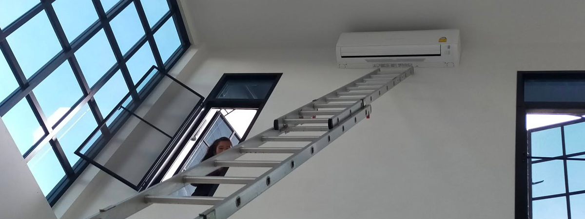 ใครให้ติดแอร์ตรงนั้นนะ ช่างขึ้นไปล้างแอร์ให้ลูกค้า พอเห็นความสูงแล้ว ขาแทบสั่น