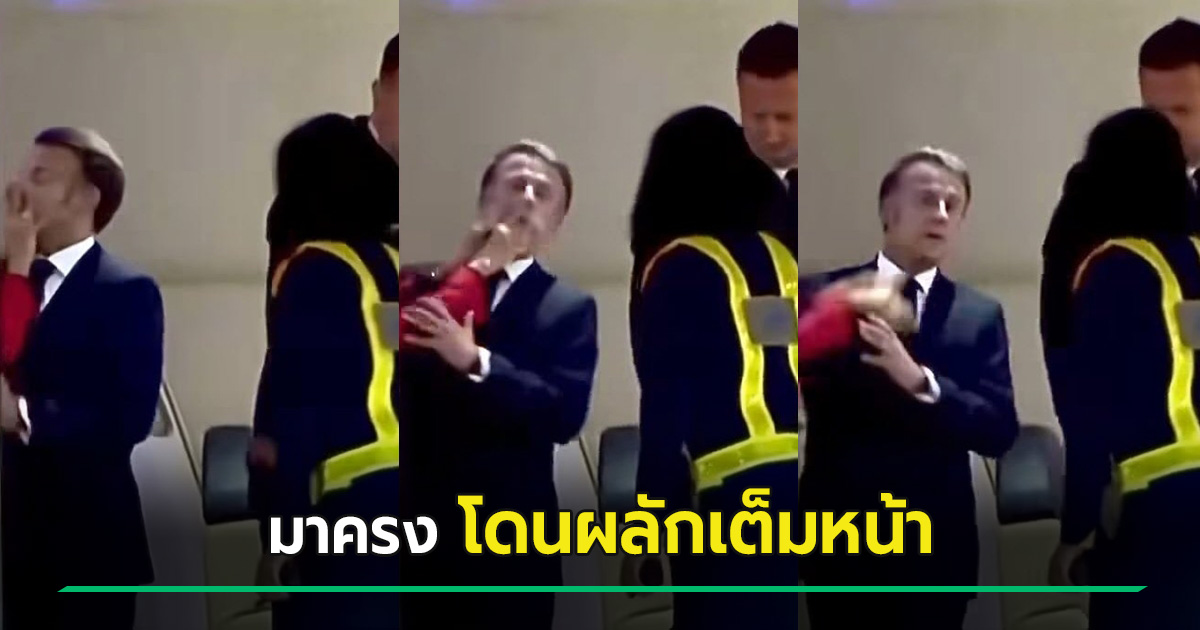 เอ็มมานูเอล มาครง ประธานาธิบดีฝรั่งเศส ถูกภริยาผลักใบหน้า ขณะเตรียมลงเครื่องบิน แจงแค่หยอกล้อกัน