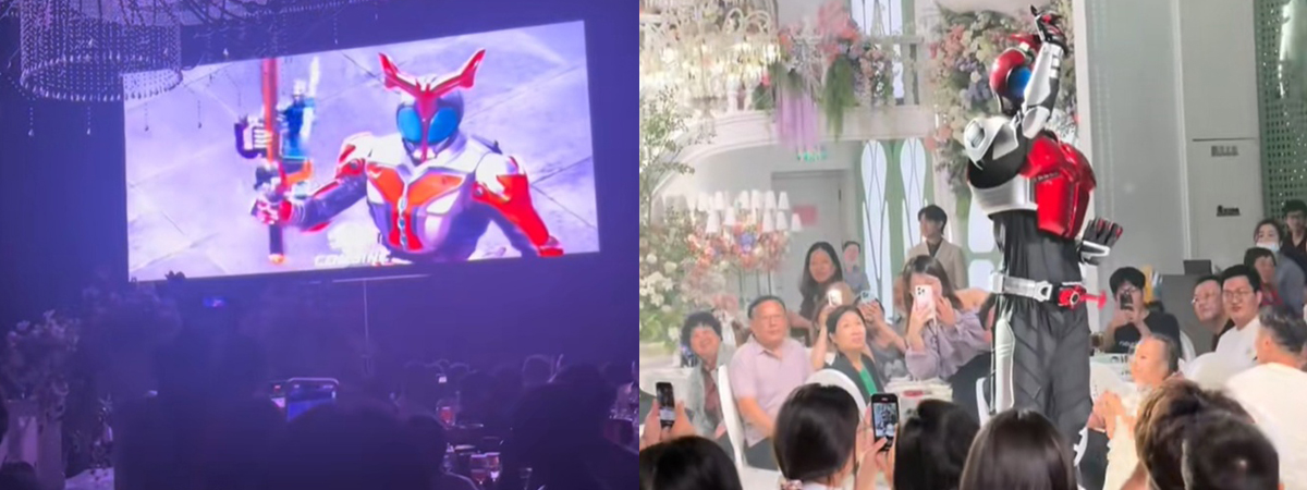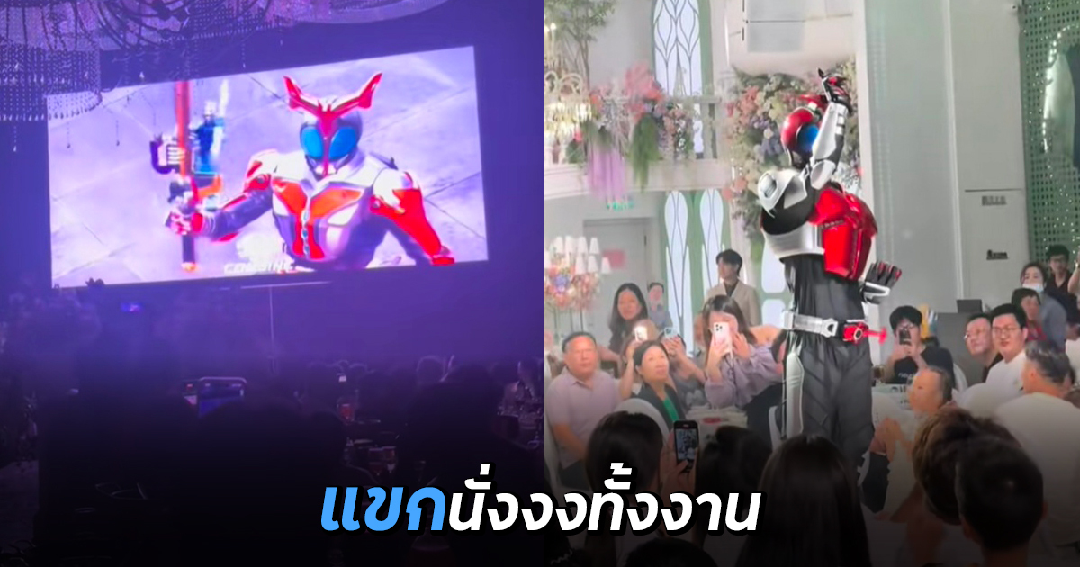 ผู้ใช้ TikTok @daccautulen.vn ได้เผยภาพบรรยากาศงานแต่งในจีน ทุกอย่างดูปกติเรียบร้อยดี จนกระทั่งการปรากฏตัวของเจ้าบ่าว แรก ๆ คนในงานงงว่า ในงานมีเปิดวีทีอาร์แบบนี้ด้วยเหรอ ก่อนที่เจ้าบ่าวมาในชุด คาเมนไรเดอร์ คาบูโตะ พร้อมโพสท่าตรงกลางเวที แทบแย่งซีนเจ้าสาวที่ยืนอยู่ข้างหลังไปแล้ว แถมยังทำคนในงานงงหนักเข้าไปอีก ว่าพี่แกมาชุดนี้ได้ยังไงนะ