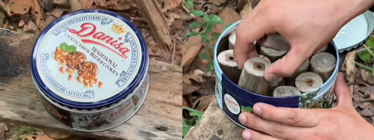 ทำให้ง่ายกว่าเดิม เทคนิคทำถ่านไม้ไว้ใช้ในป่า แค่มีกระป๋องขนมก็ทำได้