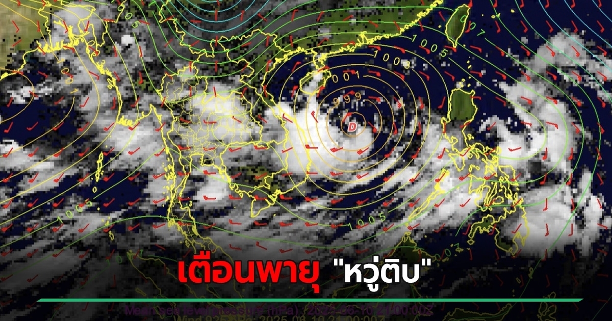 "ประกาศกรมอุตุนิยมวิทยา เรื่อง พายุ "หวู่ติบ" บริเวณทะเลจีนใต้ตอนบน ฉบับที่ 6 (140/2568)