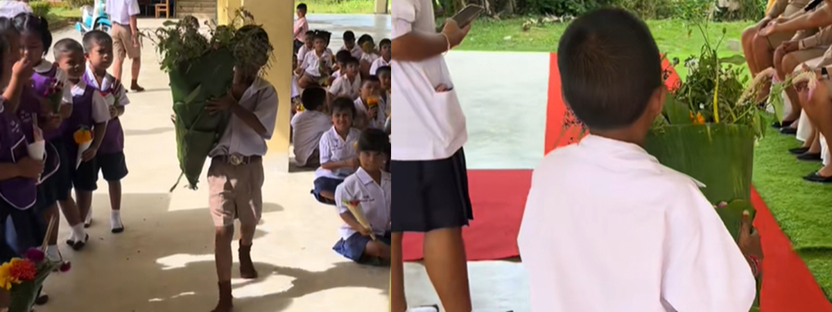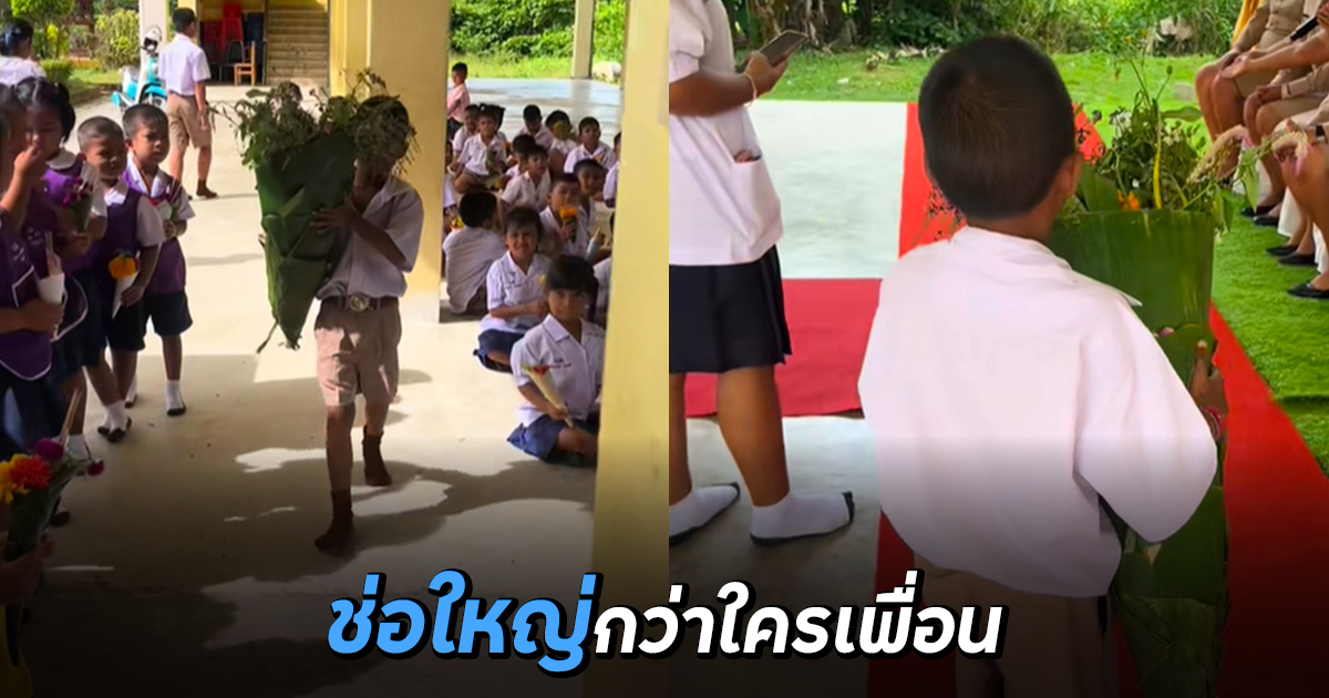 กลัวครูไม่ประทับใจ ไหว้ครูธรรมดาโลกไม่จำ นักเรียนจัดดอกไม้ช่อใหญ่ จนคนมองทั้งโรงเรียน
