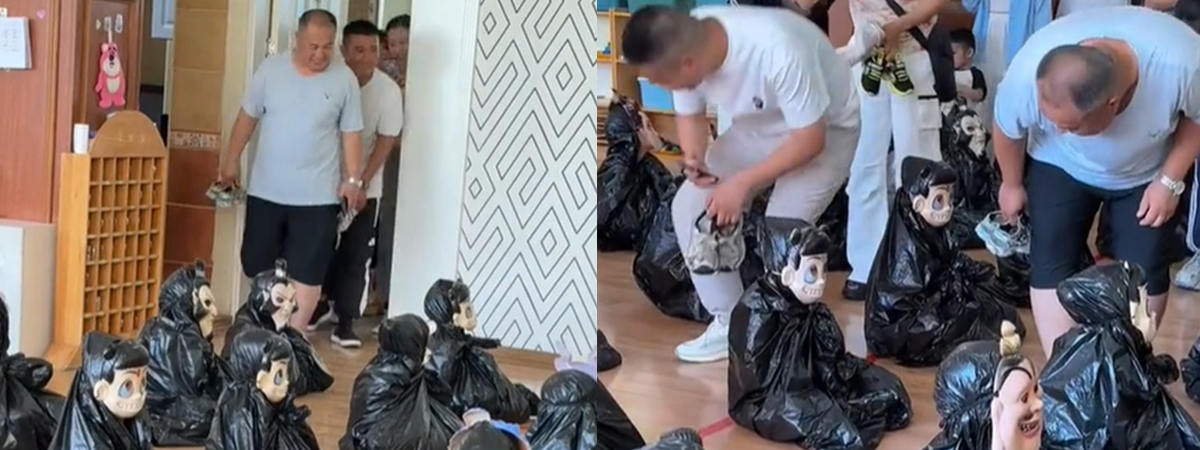 ผู้ใช้ TikTok @v_v_k197 ได้เผยภาพโรงเรียนอนุบาลแห่งหนึ่งในจีน ทำกิจกรรมเพื่อเป็นการลองใจพ่อแม่ของเด็ก ด้วยการเอาเด็ก ๆ มาห่อในถุงสีดำ แล้วสวมหน้ากากเพื่อเป็นการปิดหน้า จากนั้นให้พ่อแม่เดินหาลูกตัวเอง พร้อมสังเกตจุดเด่น แต่น้องนั่งนิ่งกันมาก พ่อแม่ส่วนใหญ่หาลูกตัวเองไม่เจอทั้งนั้น ถ้าเกิดว่าทำแบบนี้ที่ไทย เชื่อว่ามีดราม่าแน่นอน