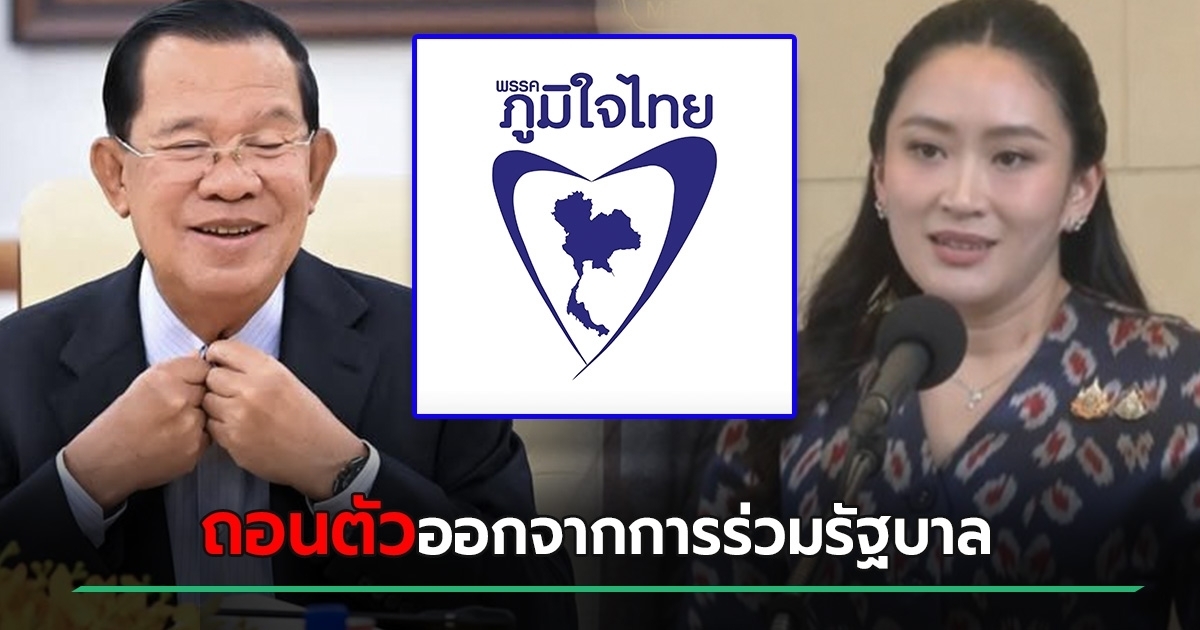 พรรคภูมิใจไทย ออกแถลงการณ์ถอนตัวออกจากการร่วมรัฐบาล พร้อมเรียกร้องนายกฯ อุ๊งอิ๊ง แพทองธาร ชินวัตร แสดงความรับผิดชอบ กรณีคลิปเสียงคุย ฮุน เซน