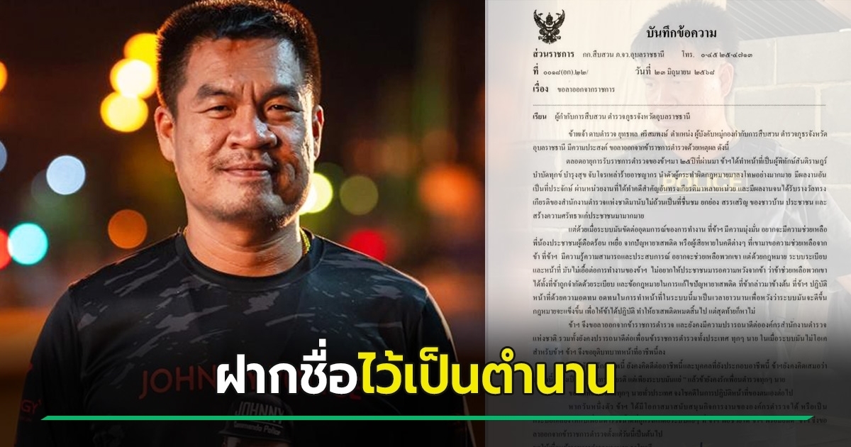 จอนนี่มือปราบ ลาออกจากตำรวจ ลั่นทิ้งชื่อไว้เป็นตำนาน เตรียมเจอกันเวอร์ชั่นใหม่ ที่ไม่เกรงกลัวใคร เผยระบบขัดต่ออุดมการณ์ ถูกจำกัดด้วยระเบียบ ไม่เอื้อการทำงาน