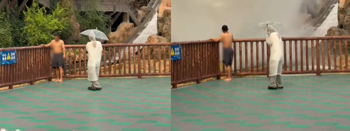 ผู้ใช้ TikTok @nenepet99 ได้เผยภาพตอนไปยืนดูคนเล่นสไลเดอร์น้ำ ในสวนสนุกแห่งหนึ่ง เตรียมป้องกันไว้ทุกทาง มีทั้งเสื้อกันฝนและร่ม น้ำสาดเยอะแค่ไหนก็ไม่หวั่น แต่พอได้เจอสถานการณ์จริง นึกว่าจะรอด ที่ไหนได้โดนสาดที ลงไปนอนหงายกับพื้นแล้ว กลายเป็นไวรัลฮาที่ชาวเน็ตถล่มไลก์ให้พรึ่บ