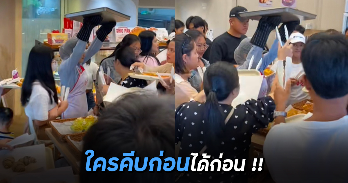 สงครามคีบด่วน ใครไวได้ก่อน ร้านเบเกอรี่ไม่ทันได้วางถาดขนมมันม่วง เจอคนรุมแย่งจนหมดเกลี้ยง