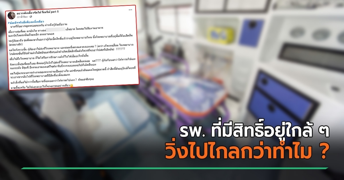 "ผมไม่รู้นะ ระบบการทำงานของพวกท่านเป็นอย่างไร แต่จริง ๆ แล้วมันแผลใหญ่ขนาดนี้ ถ้าสิทธิมันอยู่ใกล้ ก็ควรที่จะเอาเขากลับไปที่โรงพยาบาลที่มีสิทธินะตั้งแต่แรก แล้วสิ่งที่แย่ไปกว่านั้นคือการที่คุณบอกว่าให้หารถไปเอง ? มันแย่จริง ๆ นะ ตามนี้นะครับ ไม่ใช่เอะอะอะไรก็จะเอกชนอย่างเดียว"