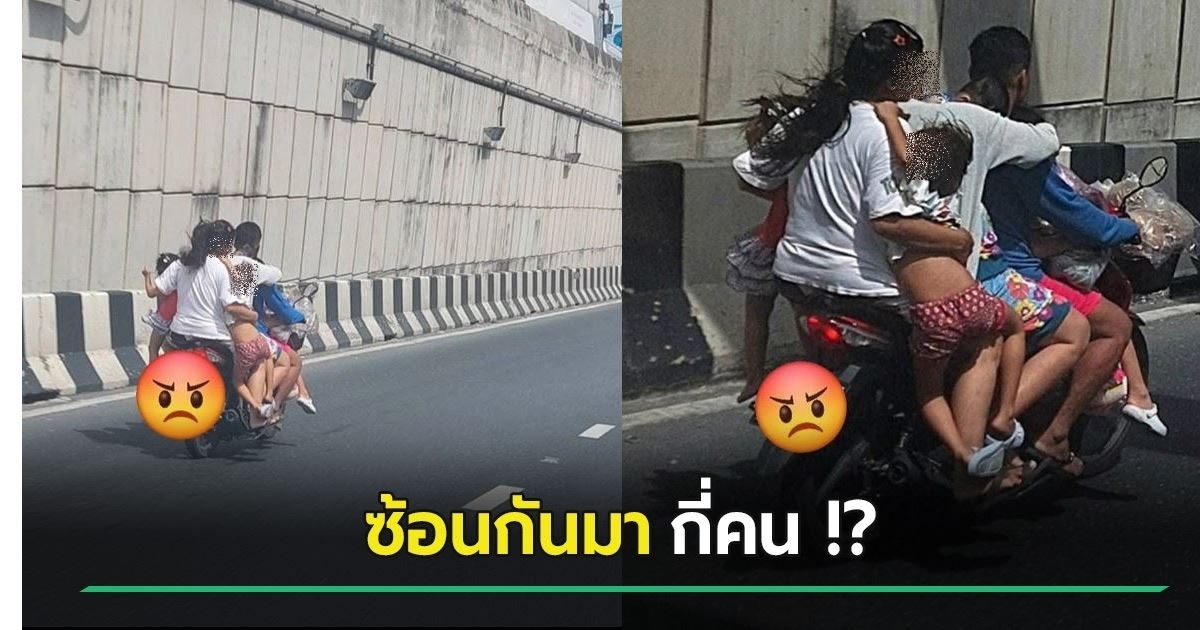 นอกจากนี้ เมื่อลองสังเกตภาพดังกล่าวจะพบว่า คนขี่รถเป็นชาย 1 คน ส่วนคนซ้อนเป็นผู้หญิง ซึ่งมือข้างซ้าย-ขวา ต่างอุ้มเด็กไว้ข้างละ 1 คน ตรงกลางมีเด็กนั่ง 1 คน แล้วมีเด็กนั่งซ้อนด้านบนที่กลางอีก 1 คน และมีเด็กอีกคนนั่งอยู่ด้านหน้าคนขี่รถ รวมแล้วคันนี้ขี่ซ้อนกันมาทั้งหมด 7 ชีวิตเลยทีเดียว