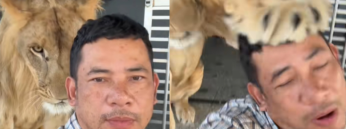 ผู้ใช้ TikTok @the_lion_king9991 ได้เผยภาพชายหนุ่มคนหนึ่ง เอามือถือมาถ่ายเซลฟี่กับสิงโตที่ตัวเองเลี้ยง พยายามชวนลูกให้เล่นกล้อง แต่สิ่งที่มันทำนั้น ดันไปเล่นหัวพ่อแทนซะงั้น อีกนิดพ่อเกือบได้กลายเป็นอาหารให้สิงโตแล้ว จนพ่อต้องดุน้องให้หยุดเล่นแรง งานนี้ชาวเน็ตต่างเป็นห่วง บอกต้องโพสต์ให้เห็นหน้าทุกวัน ถึงจะสบายใจ