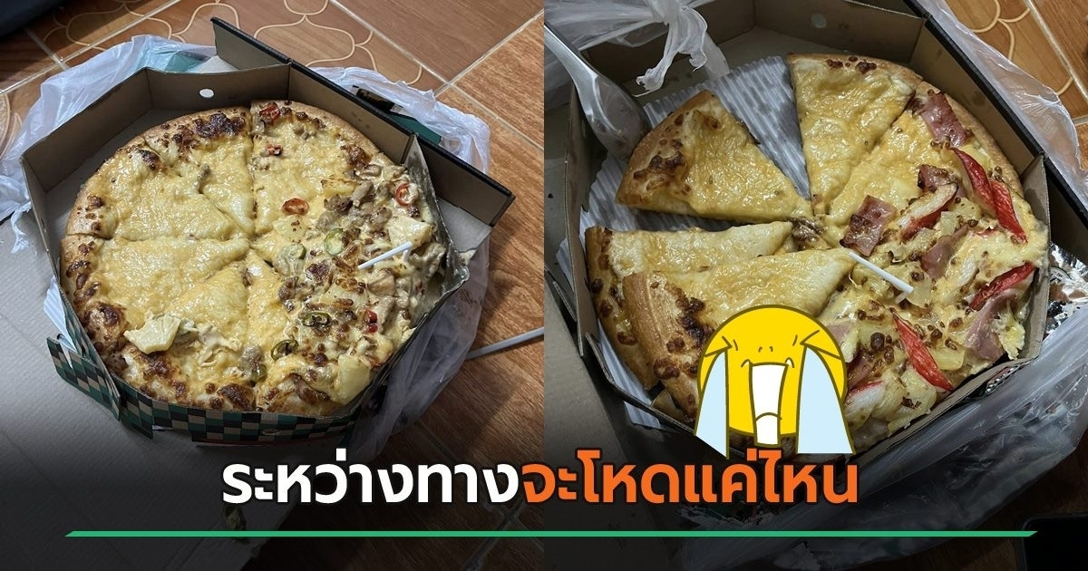 สั่งพิซซ่าผ่านเดลิเวอรี่ แต่เมื่อเปิดกล่องออกดูพบว่า หน้าพิซซ่ากระจัดกระจาย เห็นแล้วท้อเลย ฝีมือไรเดอร์ ซิ่งขนาดไหน ไม่ก็ทางขรุขระเกิน