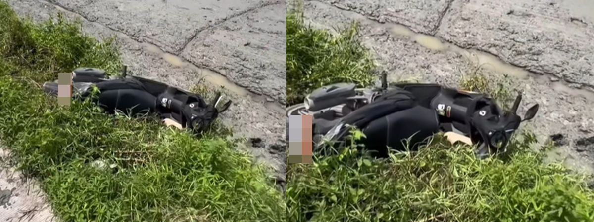 ก็ว่าคนหายไปไหน มอเตอร์ไซค์ล้มลงบ่อโคลน ตามหาคนเจ็บ แต่หันกล้องมาก็คือ...