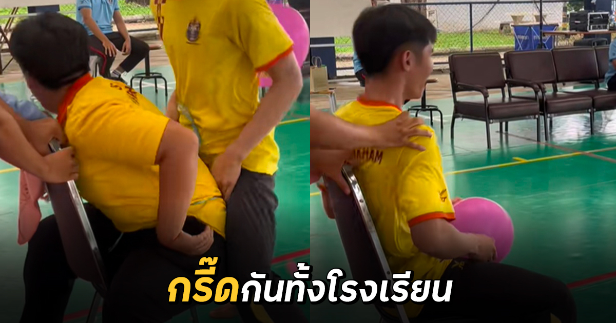 ผู้ใช้ TikTok @ig.baiphxi02 ได้เผยภาพการแข่งขันกีฬาสีจากโรงเรียนแห่งหนึ่ง แข่งกันทำลูกโป่งให้แตกเร็วที่สุด สีไหนไวกว่าชนะไป แต่ผู้คนพุ่งเป้าไปที่หนุ่มคนนี้ ดูท่าจะฟินเป็นพิเศษ พอถึงตอนที่ตัวเองจะต้องนั่ง จากเดิมที่นั่งข้างหลัง รีบเปลี่ยนเป็นหันข้างหน้าทันที จังหวะที่อีกคนกระโดดมาทับลูกโป่ง บอกเลยว่า สาว ๆ พากันกรี๊ดลั่นโรงเรียน