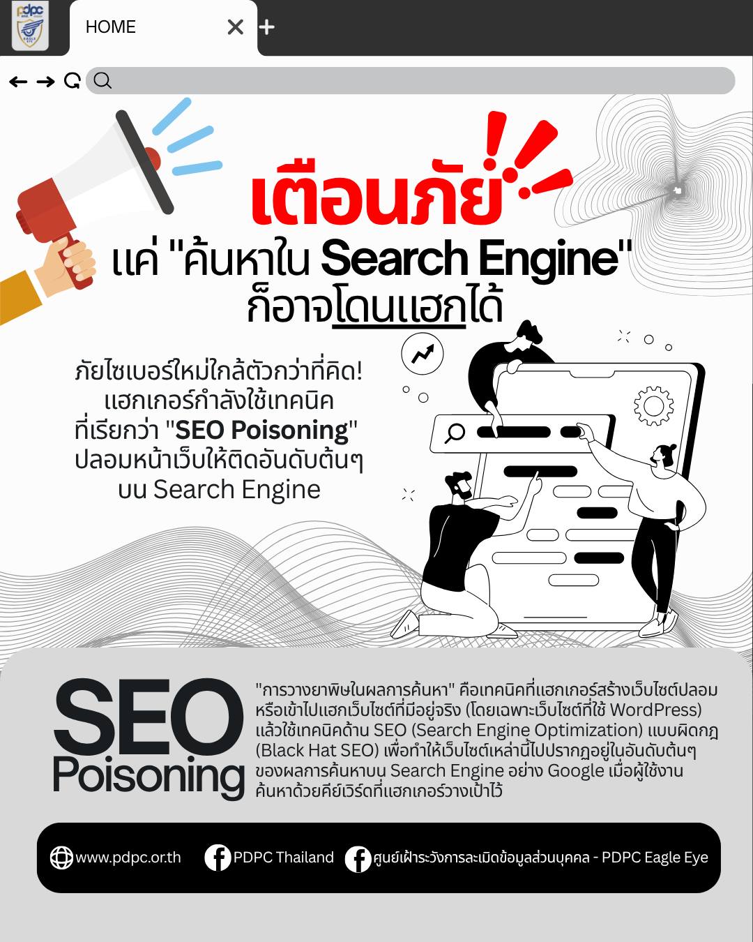วันที่ 21 กรกฎาคม 2568 เฟซบุ๊ก ศูนย์เฝ้าระวังการละเมิดข้อมูลส่วนบุคคล - PDPC Eagle Eye มีการโพสต์เตือนภัยการค้นหา Search Engine ก็อาจจะทำให้คอมพิวเตอร์เราถูกแฮกได้ มีรายละเอียดดังนี้