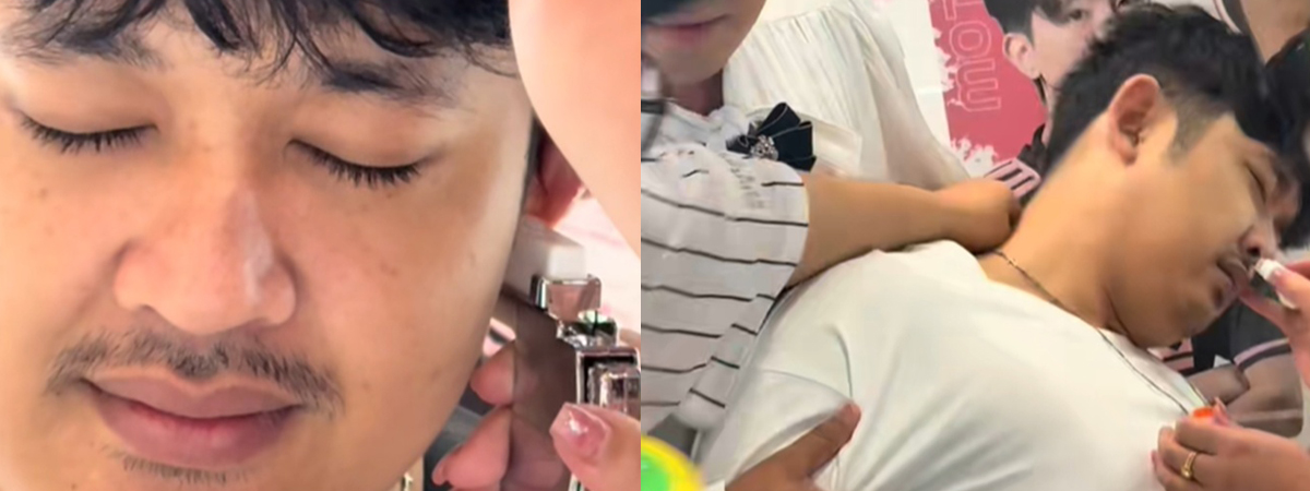 ผู้ใช้ TikTok @thada006 ได้เผยภาพตอนที่หนุ่มพาเพื่อนไปเจาะหู ซึ่งเป็นครั้งแรกที่เจาะ อยากรู้ว่ามันเจ็บแค่ไหน หลังจากที่เสร็จหมดทุกขั้นตอน แทบคว้าตัวเพื่อนไม่ทัน เพราะเจาะหูเสร็จเป็นลมไปเลย เจ้าของร้านต้องเอายาดมมาให้ดม เพื่อให้ประคองสติกลับมาได้ กลายเป็นไวรัลที่เรียกเสียงฮาสนั่น
