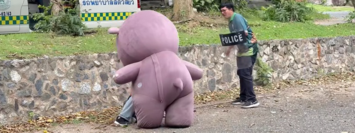 เฟซบุ๊กเพจ สวนสัตว์เปิดเขาเขียว Khao Kheow Open Zoo ได้เผยภาพเจ้าหน้าที่สวนสัตว์เตรียมความพร้อม จัดแผนซ้อมรับมือเวลาเจ้าหมูเด้งหลุดจากสวนสัตว์ ซ้อมแบบเล่นใหญ่และสมจริง โดยเตรียมอุปกรณ์แบบครบมือ แถมยังมีแต่งมาสคอตเป็นหมูเด้ง เพื่อให้สถานการณ์ดูจริงขึ้น แต่กลับกลายเป็นว่า ชาวเน็ตขำและเอ็นดูทั้งโซเชียล