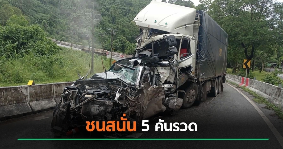 ![รถบรรทุกสิบล้อเบรกแตก ชน 5 คันรวด รถบรรทุกสิบล้อเบรกแตก ชน 5 คันรวด]()
