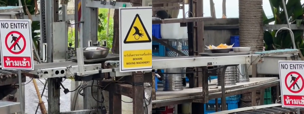 ผู้ใช้ TikTok @ww.stayonride ได้เผยภาพร้านอาหารแห่งหนึ่ง สร้างจุดเด่นให้ลูกค้าจดจำ ว่านี่คือเอกลักษณ์เฉพาะตัวของร้าน ถ้าหากคิดว่าเจ้าของร้านเป็นเชฟ คุณคิดผิด แท้จริงนั้นเจ้าของร้านเป็นวิศวกร สร้างเทคโนโลยีสายพานเพื่อเสิร์ฟอาหารให้ลูกค้าถึงโต๊ะ ถึงแม้จะได้รับคำชมว่าเป็นไอเดียดี แต่ชาวเน็ตยังเป็นห่วงเรื่องความสะอาด ที่ทางร้านต้องให้ความสำคัญเช่นกัน