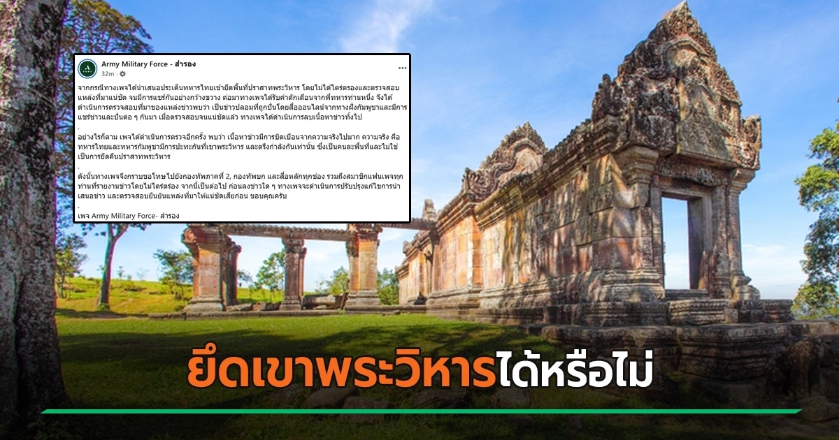 อย่างไรก็ตาม เพจได้ดำเนินการตรวจอีกครั้ง พบว่า เนื้อหาข่าวมีการบิดเบือนจากความจริงไปมาก ความจริง คือ ทหารไทยและทหารกัมพูชามีการปะทะกันที่เขาพระวิหาร และตรึงกำลังกันเท่านั้น ซึ่งเป็นคนละพื้นที่และไม่ใช่เป็นการยึดคืนปราสาทพระวิหาร