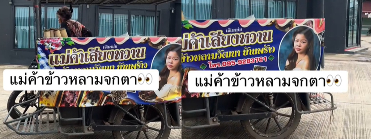 ผู้ใช้ TikTok @ploysoi_8 ได้เผยภาพลูกค้าเห็นรถขายข้าวหลามขับผ่าน เลยโบกเรียกให้จอดเพื่อซื้อ แต่สิ่งที่ทำลูกค้าตกใจแรง คงเป็นแม่ค้านี่แหละ ในรูปตรงป้ายไวนิลอย่างสวย พอมาเห็นตัวจริง นั่นใช่แม่ค้าจริง ๆ เหรอ ไม่รู้ว่าคนอื่นจะงงด้วยไหม แต่แม่ค้าบอกด้วยตัวเองว่า ลูกค้าไม่งง แบบนี้ลูกค้าชอบ