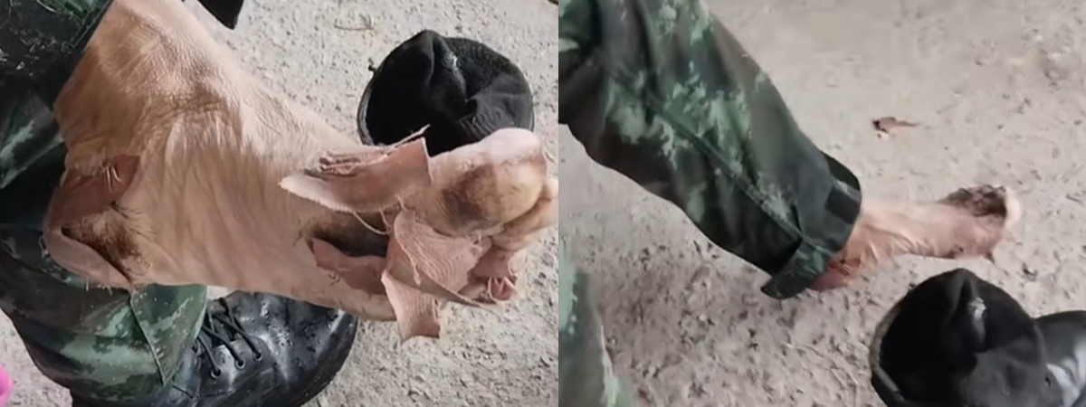 เบื้องหลังของการเสียสละ เปิดสภาพเท้าทหารไทย หลังรบหลายวัน ถอดรองเท้าเต็มไปด้วยพลาสเตอร์