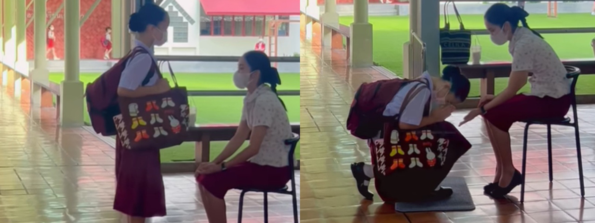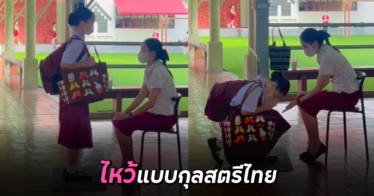 ชาวเน็ตแห่ชื่นชม นักเรียนไหว้ครูก่อนกลับบ้าน ไหว้อย่างงาม ๆ แบบกุลสตรีไทย