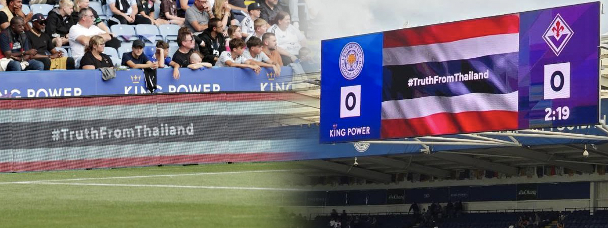 เลสเตอร์ ซิตี้ ขึ้นแบนเนอร์ธงชาติประเทศไทย #TruthFromThailand ประกาศความจริงชาวโลกรับรู้ ในเกมอุ่นเครื่องกับฟิออเรนติน่า ที่สนามคิงเพาเวอร์ สเตเดี้ยม