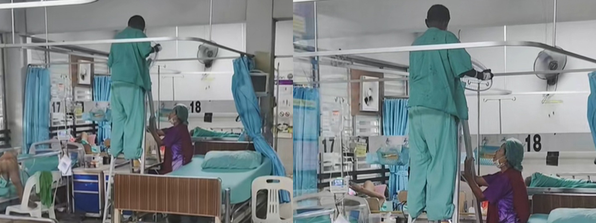 ผู้ใช้ TikTok @ppari139 ได้เผยเรื่องราวที่เกิดขึ้นในโรงพยาบาลแห่งหนึ่ง ซึ่งไม่คิดว่าจะได้เห็นภาพแบบนี้ในไทย ผลของการที่หมอไม่ให้คนไข้กลับบ้าน ไม่รู้ว่าคนไข้เคยเป็นช่างด้วยรึเปล่า เลยช่วยหมอซ่อมพัดลมที่โรงพยาบาล นี่คือสาเหตุที่หมอยังไม่ให้กลับบ้านสินะ