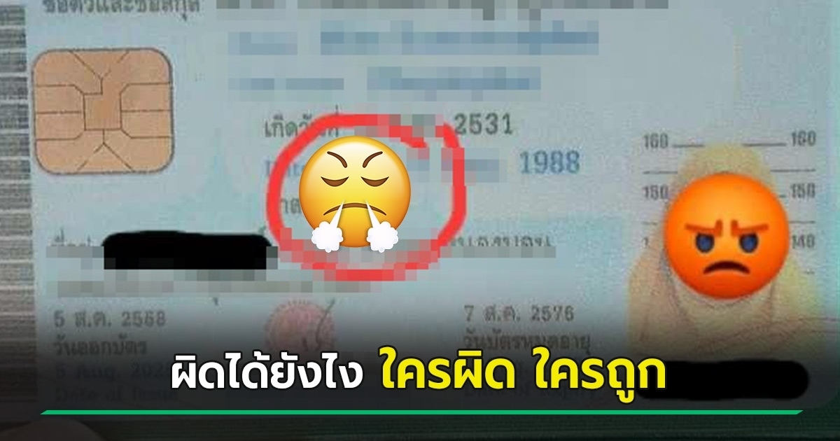 หญิงไปทำบัตรประชาชน เสร็จแล้วกลับพบจุดผิดพลาดแบบที่ไม่น่าให้อภัย กว่าจะเห็นก็ออกมาแล้ว แบบนี้มีคนตั้งประเด็น ใครผิด ใครถูก ระหว่างคนทำบัตรหรือเจ้าของบัตร