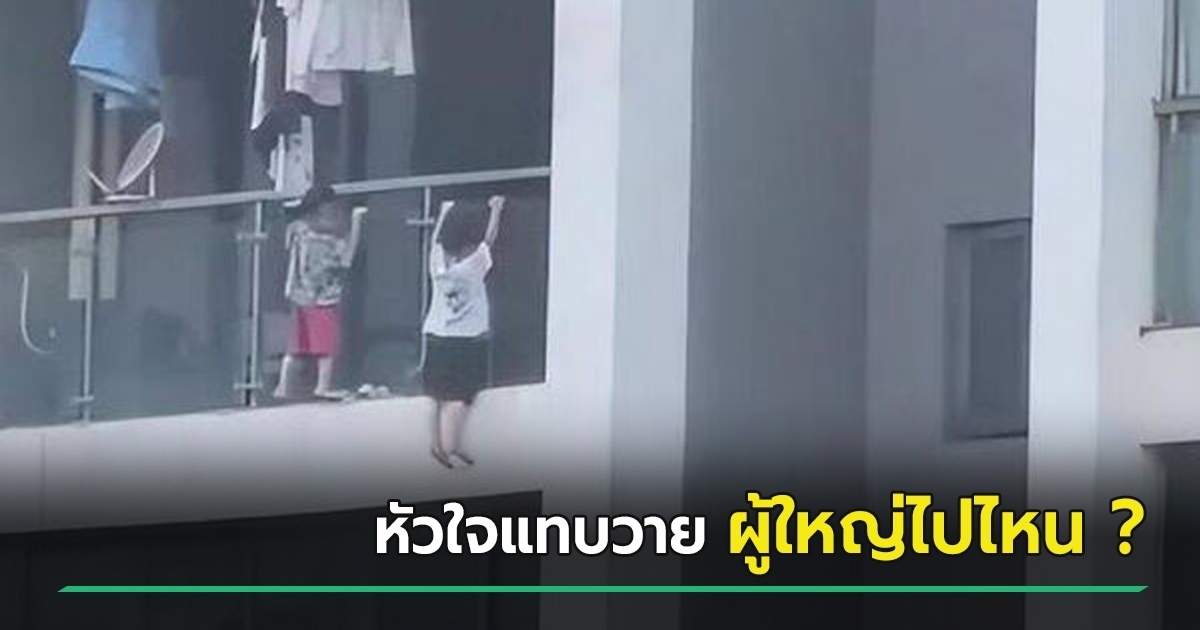 เพื่อนบ้านหัวใจแทบวาย หันมาเห็นภาพ 2 เด็กน้อยเล่นกัน บนระเบียงชั้น 13 ช็อกพ่อทิ้งลูกอยู่กัน 2 คน ไร้ผู้ใหญ่ดูแล พบคนหนึ่งห้อยอยู่กลางอากาศ พลาดนิดเดียวถึงชีวิต
