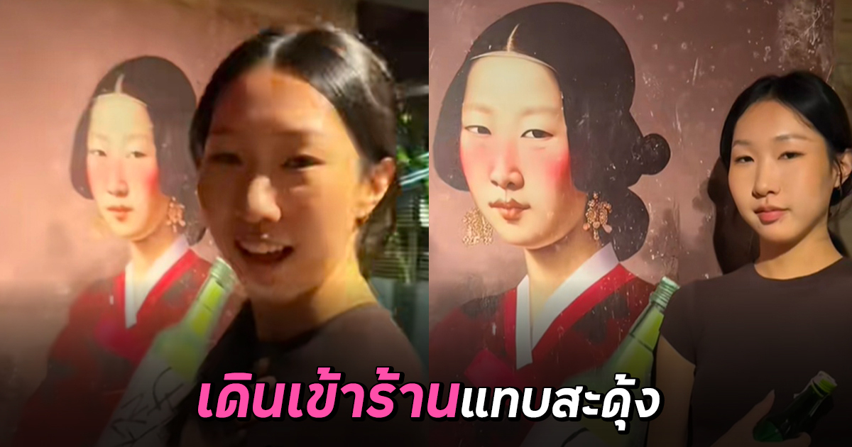 ผู้ใช้ TikTok @p.punchy ได้เผยภาพสาวคนหนึ่ง ไปกินข้าวที่ร้านอาหารเกาหลี จังหวะนั้นเห็นบางอย่างอยู่ในร้าน ทำเอาเธออึ้งหนักมาก สิ่งที่เห็นเป็นรูปวาดผู้หญิงใส่ชุดฮันบก แขวนตกแต่งเด่นสง่าในร้าน มีความเหมือนเป๊ะจนต้องไปยืนถ่ายรูป แทบคิดว่าเป็นตัวเองเมื่อชาติที่แล้ว ถ้าเจ้าของร้านมาเห็นมีช็อกแน่ ๆ
