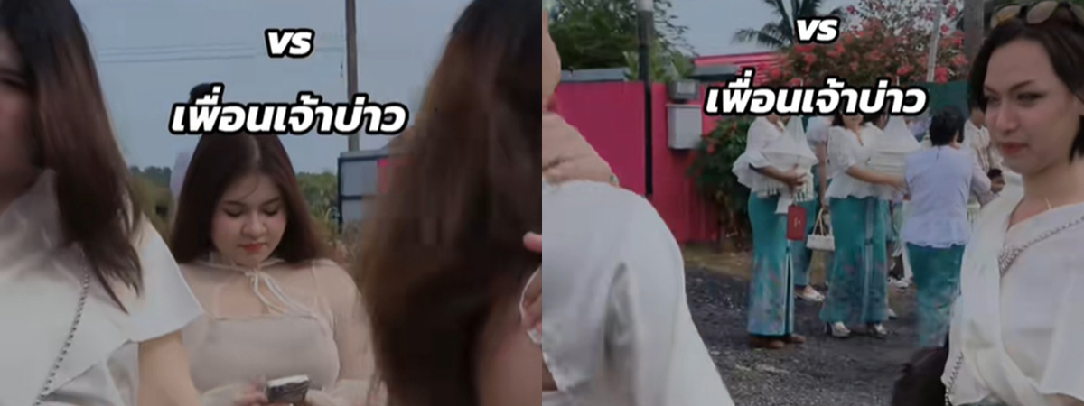 ผู้ใช้ TikTok @puuhri ได้เผยภาพบรรยากาศงานแต่งแห่งหนึ่ง รีวิวชุดของเพื่อนเจ้าสาวกับเพื่อนเจ้าบ่าว ฝั่งเพื่อนเจ้าสาวแต่งชุดไทยตามงานแต่งแบบปกติ ตัดภาพไปที่ของเพื่อนเจ้าบ่าว มาเป็นขบวนการ 5 สีเลยทีเดียว โดดเด่นและแปลกตา แทบแย่งซีนคนทั้งงาน เผลอ ๆ เด่นกว่าบ่าวสาวด้วยซ้ำ