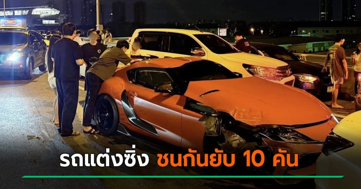 ![ก๊วนรถแต่งซิ่งพังยับ 10 คัน เปิดนาทีแข่งกันมาบนทางด่วน ก๊วนรถแต่งซิ่งพังยับ 10 คัน เปิดนาทีแข่งกันมาบนทางด่วน]()