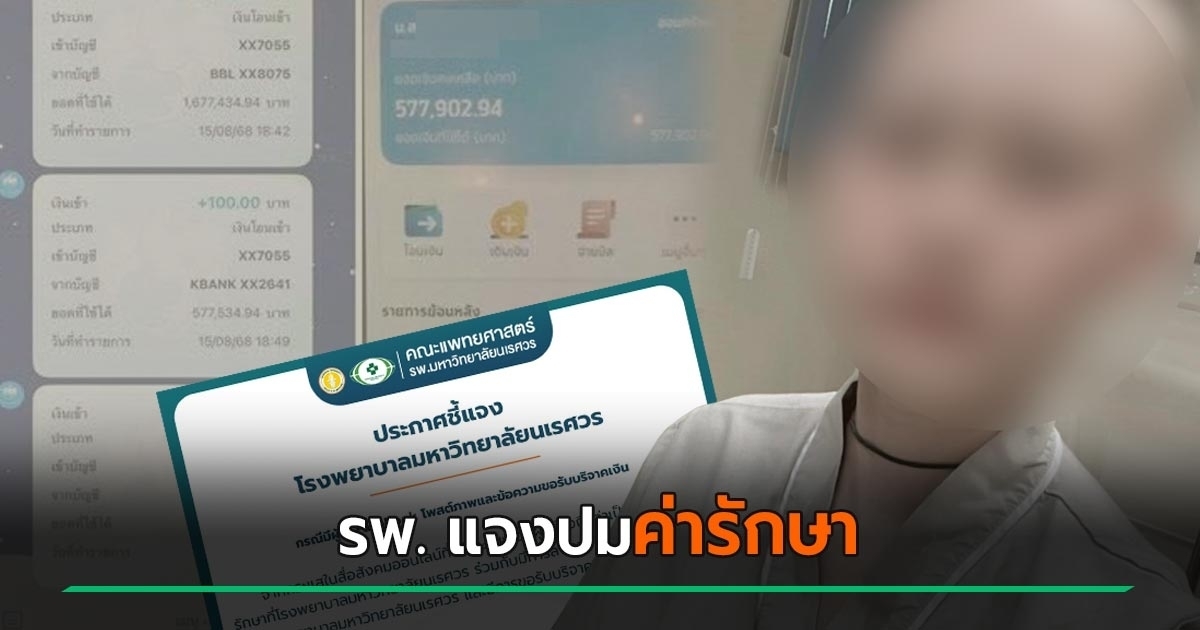 ผู้ป่วยยืนดีคืนเงินคนที่ไม่สบายใจ เตรียมชี้แจงรายละเอียดค่ารักษาอีกครั้ง